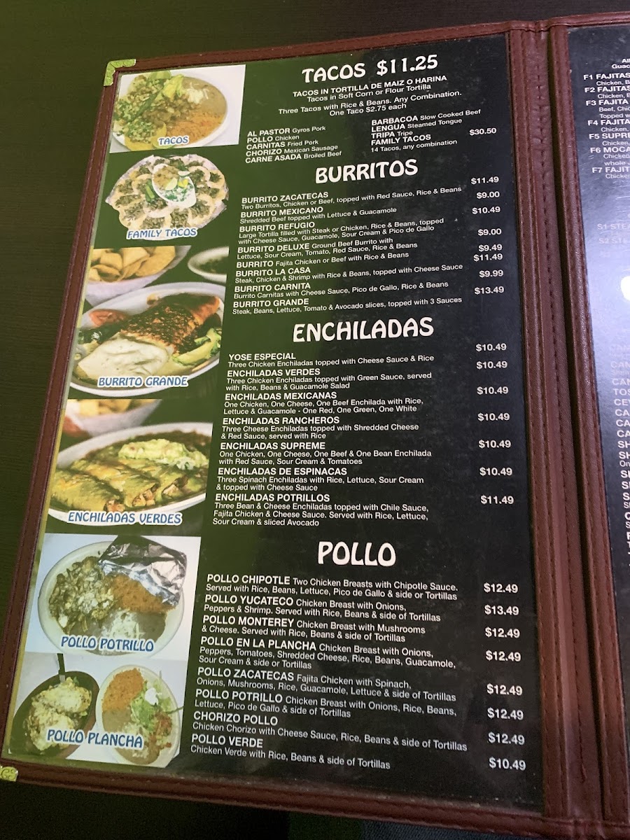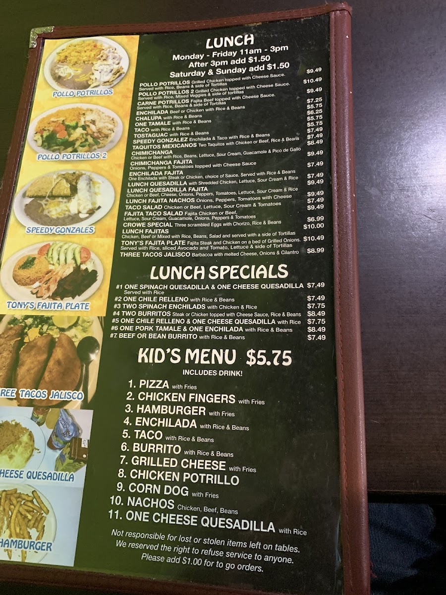 Potrillos Mexican Restaurant Menu